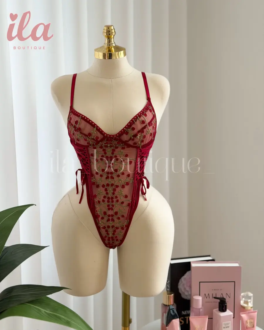 استعدي لإشعال الأجواء مع هذا البودي سوت الساحر! تصميم فريد يجمع بين الأحمر الناري والورود الخضراء الناعمة، ليمنحكِ إطلالة لا تُنسى. هذا البودي سوت ليس مجرد قطعة ملابس داخلية، بل هو تعبير عن الثقة بالنفس والجاذبية التي لا تقاوم.